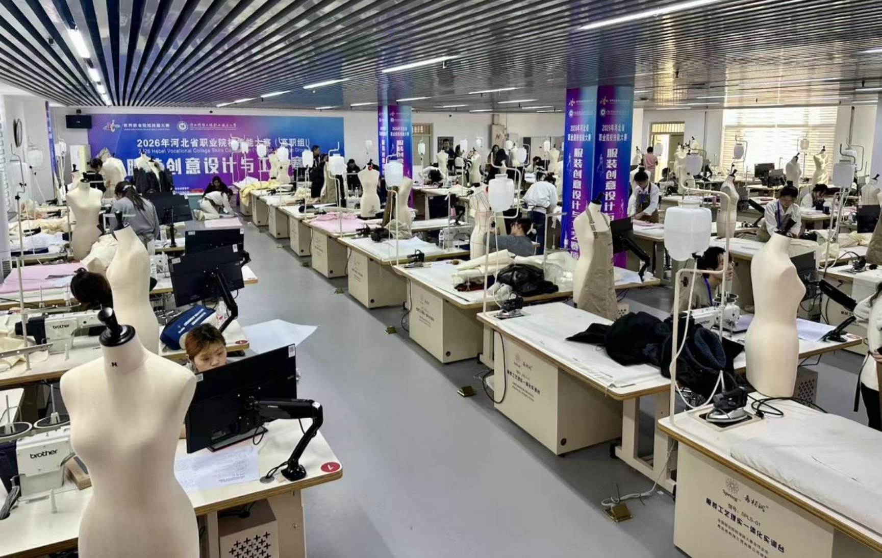 本次比赛由河北省教育厅主办,河北省纺织服装职业教育集团、河北省纺织服装产业产教融合共同体承办,北京凯德凯姆科技有限公司提供技术支持。大赛有来自省内4所服装职业院校的8个代表队,共32名选手参赛。