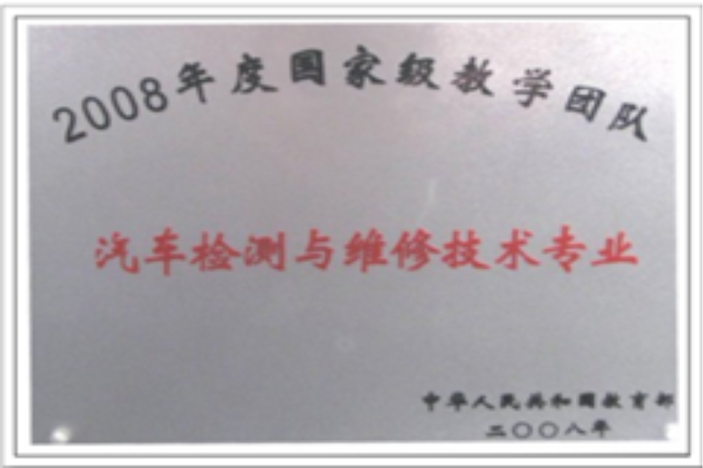 2008年,汽车检测与维修技术专业教学团队荣获国家级教学团队。同年,正式与博世贸易(上海)有限公司签约,联合招收博世班。