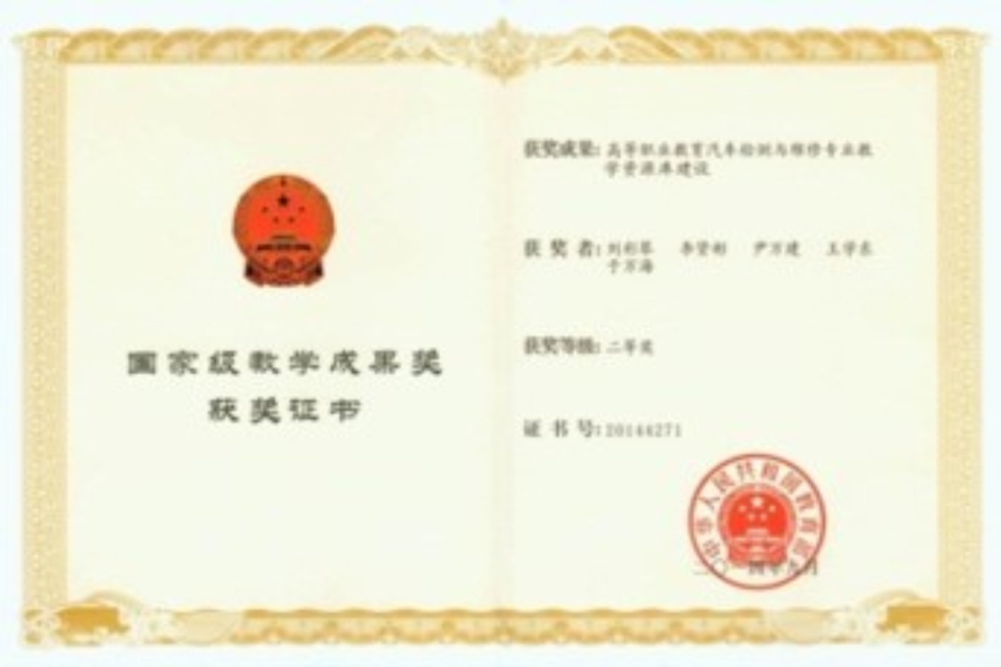 2012年,牵头20余所国家示范校完成汽车检测与维修技术专业国家教学资源库建设工作。